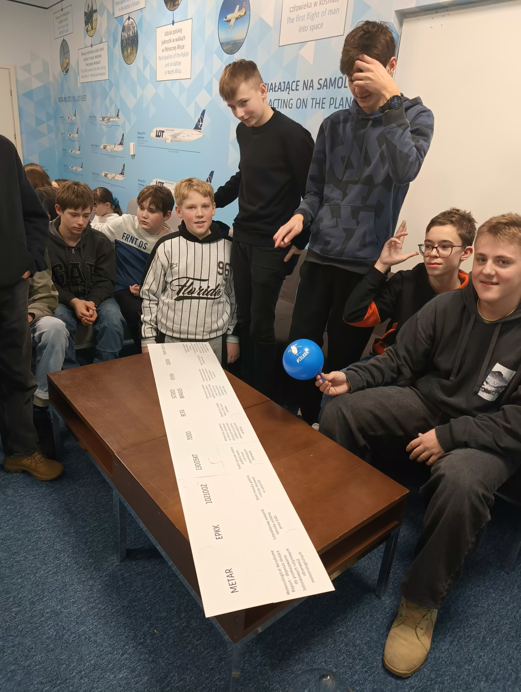 W ramach preorientacji zawodowej uczniowie klas siódmych udali się na wycieczkę do Centrum Edukacji Lotniczej w Balicach, gdzie wzięli udział w grze terenowej przybliżającej im różnorodne zawody na lotnisku. Młodzież rozwiązywała zadania wykazując się wiedzą, spostrzegawczością i logicznym myśleniem. Zwycięska grupa mogła spróbować swoich sił w zawodzie marszałka korzystając z symulatora VR. Ponadto uczniowie uczestniczyli w zajęciach "Pogoda i komunikacja w lotnictwie", gdzie poszerzyli swoją wiedzę z zakresu meteorologii oraz rozszyfrowywali komunikaty lotnicze. Był to bardzo miło i pożytecznie spędzony czas.